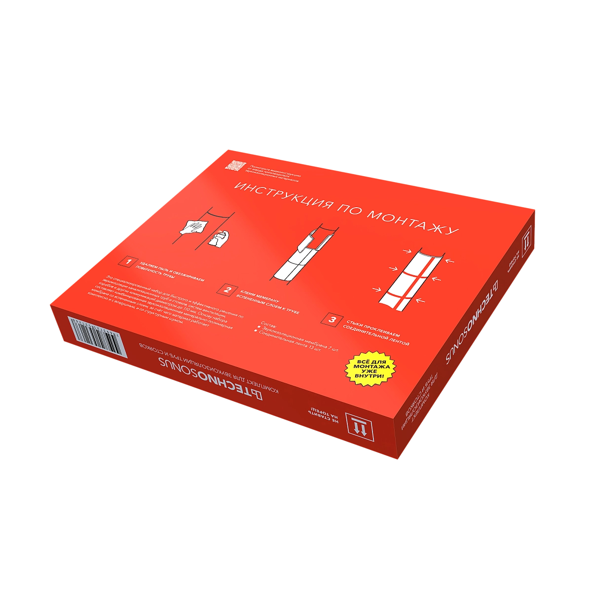 Для профилактики появления зазоров, стыки между мембраной фиксируются самоклеящейся лентой, которая также включена в набор (13 шт. размером 50х500 мм).